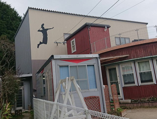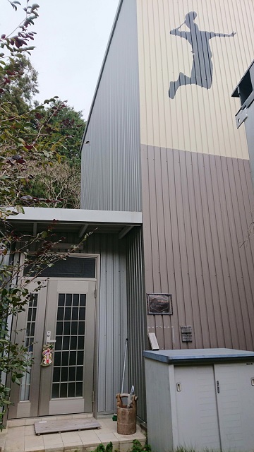 ![]() 専用コート外観 (後ろ側バドミントンシルエットが描かれた建物) |