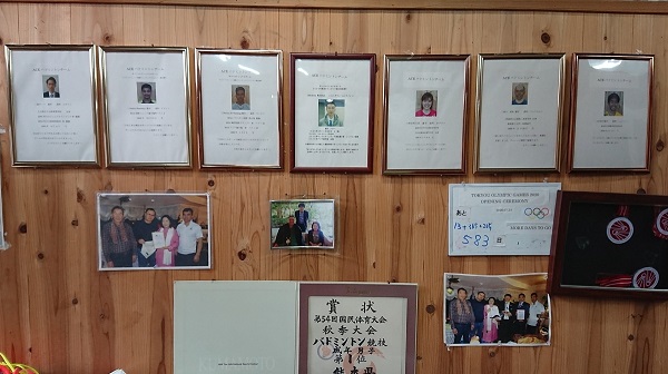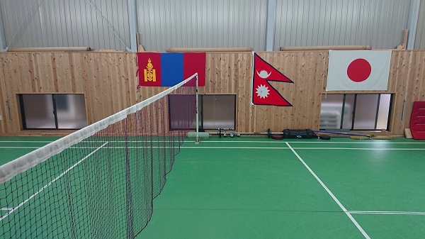 | 出入口側から見た専用コート内部 | 親善の国旗が掲げられています | |
